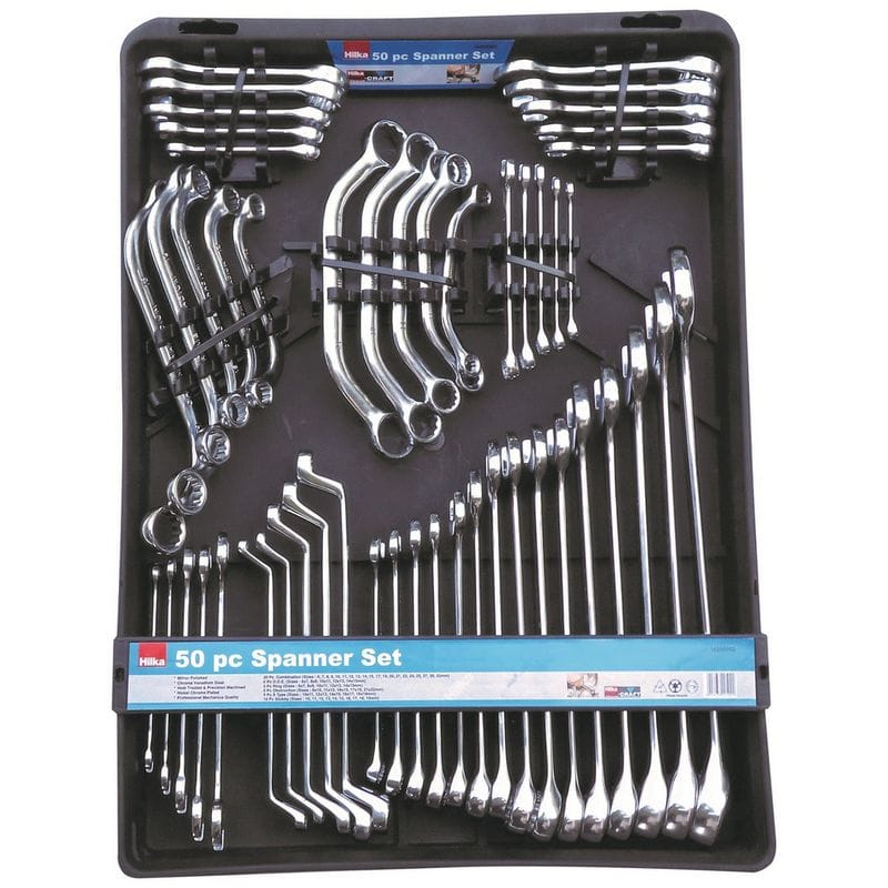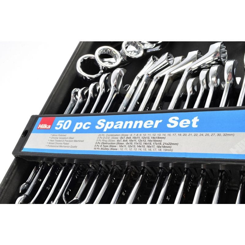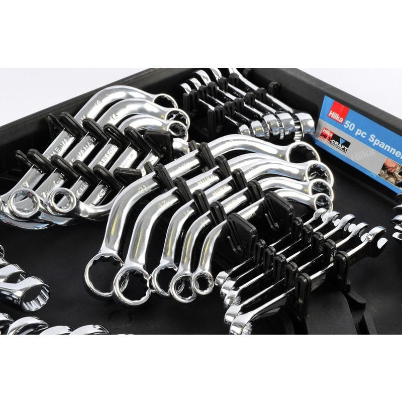 Hilka 50-Piece Chrome Vanadium Spanner Set with Storage Tray